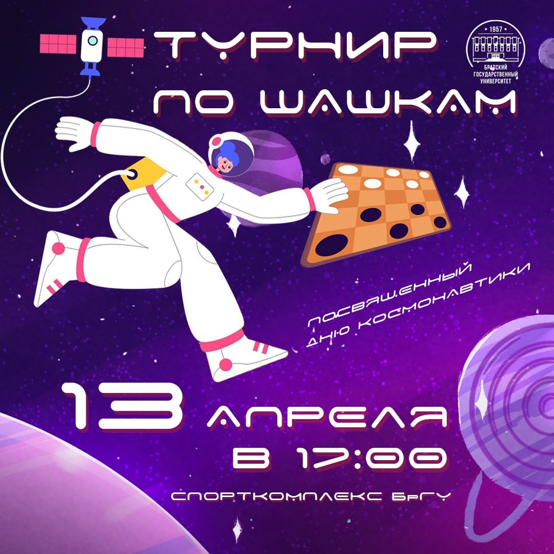 Приглашаем студентов БрГУ на Турнир по шашкам, посвященный Дню космонавтики