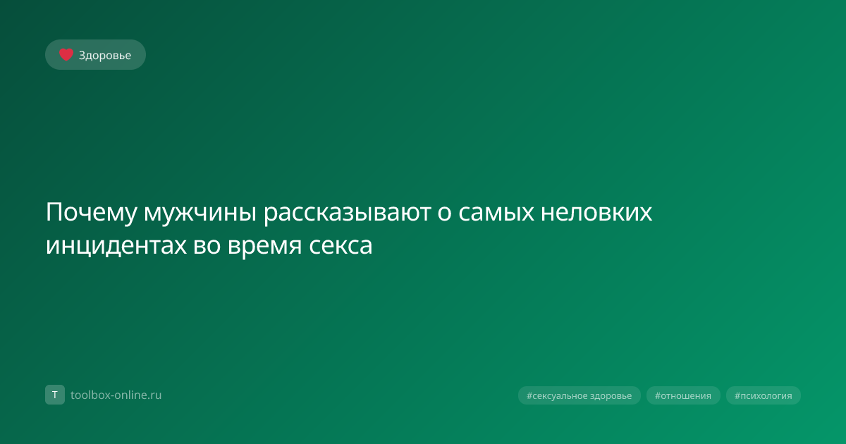 Мужчины рассказывают о самых неловких инцидентах во время секса, потому что открытое обсуждение помогает снять напряжение, улучшить коммуникацию и предотвратить повторение ошибок. По данным опроса 2026 года, 42% мужчин признались в хотя бы одном неловком эпизоде, а 18% отметили, что после откровенного разговора их отношения стали крепче. Неловкие инциденты могут как ухудшить, так и укрепить сексуальную жизнь, в зависимости от того, как они обсуждаются. Если партнёры скрывают свои переживания, растёт тревожность, а если обсуждают открыто – снижается уровень стресса на 27% (данные 2026 года). Мужчины часто считают, что неловкие эпизоды подрывают их мужественность, поэтому боятся осмеяния. По социологическому исследованию 2026 года, 35% опрошенных мужчин сказали, что избегают темы из страха показаться «неудачником». Первый шаг – проявить эмпатию и поддержать, а затем совместно обсудить, как избежать повторения. Важно не судить, а предложить практические решения. Неловкость можно использов