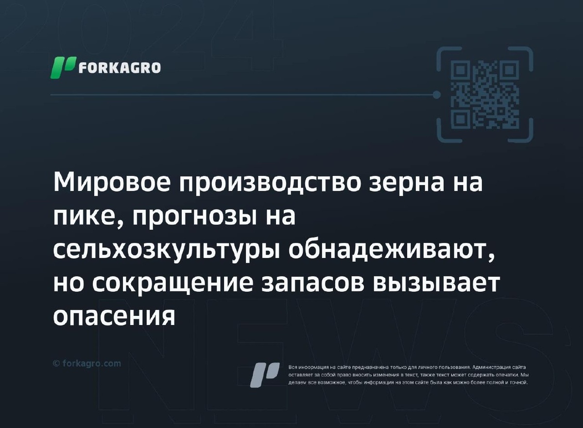 Мировое производство зерна на пике, прогнозы на сельхозкультуры обнадеживают, но сокращение запасов вызывает опасения