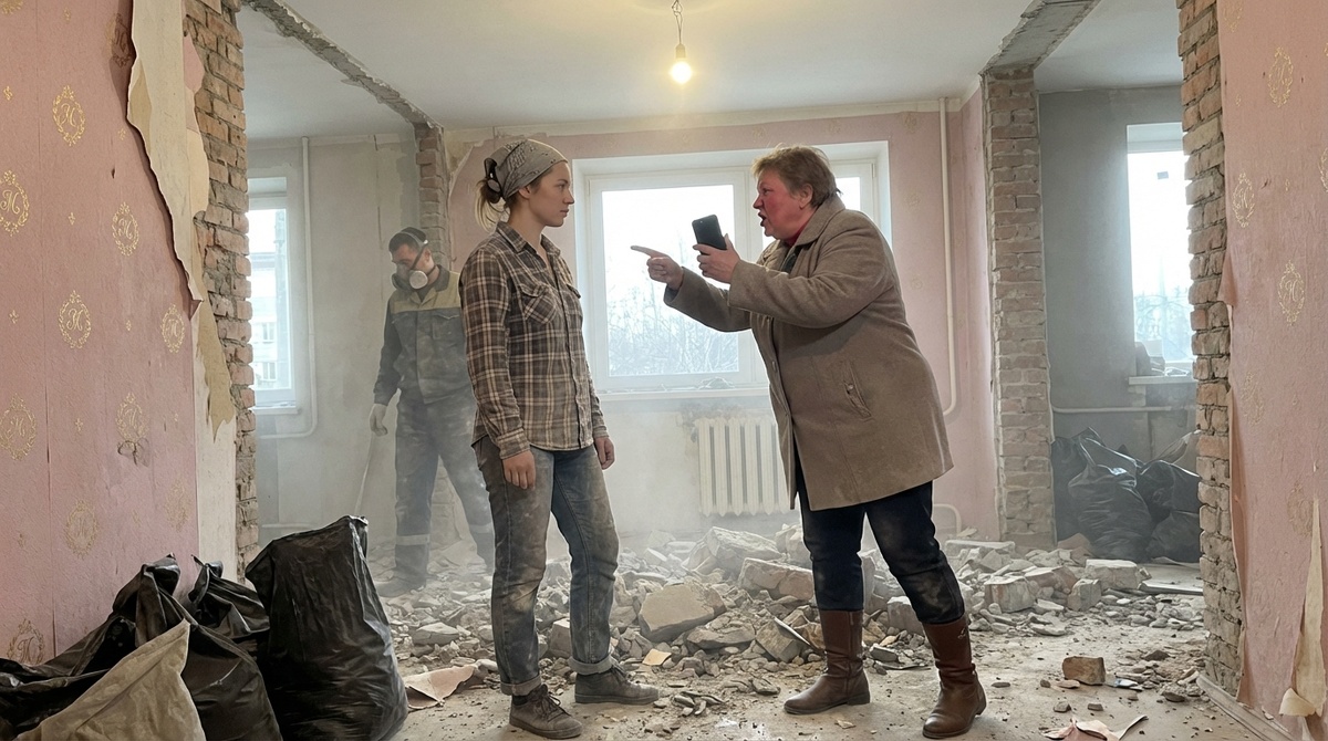 Навстречу ей из облака пыли вышел высокий рабочий в респираторе. В руках он держал кусок гипсокартона, на котором сиротливо болтался обрывок розовых обоев с золотистым тиснением. Тех самых обоев, которые свекровь лично выбирала на строительном рынке и с гордостью клеила две недели назад, пока хозяев не было дома.