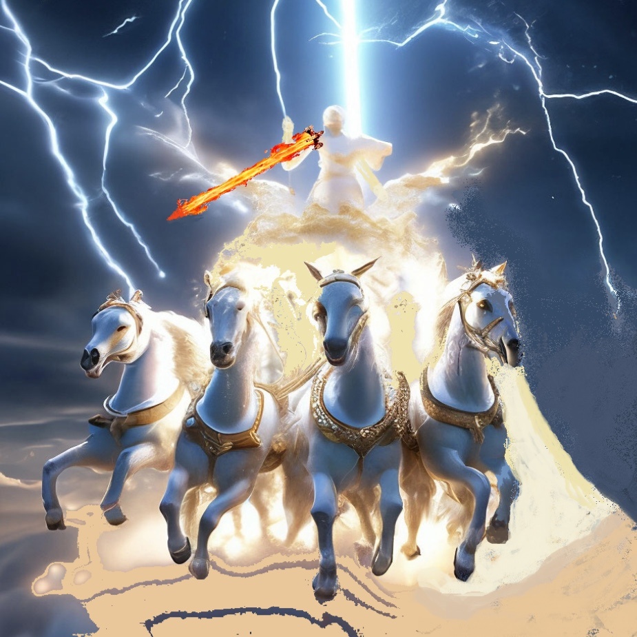 Как видим, теперь перед нами раскрылся полностью реальный ОБРАЗ Грядущего Меньшего Аватара - Представителя Космического Аватара Синтеза на Земле - и это не просто всадник на коне, а Всадник с мечом в устах, на колеснице с четырьмя белыми лошадьми. Это высвеченное сущностное дополнение, по сути, преображает всю концепцию Грядущего.