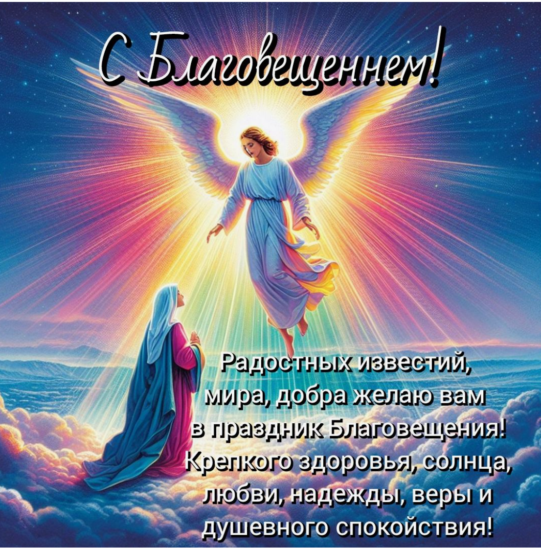 С Благовещеньем вас, милые мои! В этот день христианами почитается Благовещение Пресвятой Богородицы. Двунадесятый праздник, один из главных праздников в календаре православных славян, менее значим в католических традициях. Последний позимний-предвесенний праздник. В Евангелии от Луки содержатся подробные сведения о событиях, связанных с Благовещением Пресвятой Богородицы. Ангел Господень был направлен в Назарет к Деве Марии, которая была обручена с Иосифом и происходила из рода Давидова. Когда Мария услышала приветствие «Радуйся, благодатная!», она испытала смущение. Архангел Гавриил заверил ее, что она удостоена Божией благодати и станет матерью Спасителя. На вопрос Марии о том, как это возможно, ангел ответил, что на нее сойдет Дух Святой, а сила Всевышнего осенит ее, и потому рожденный ею будет наречен Сыном Божиим. Евангелист Лука отмечает, что Мария со смирением восприняла весть архангела. Церковь учит, что таким образом она явила всем верующим образец покорности воле Господа. Н
