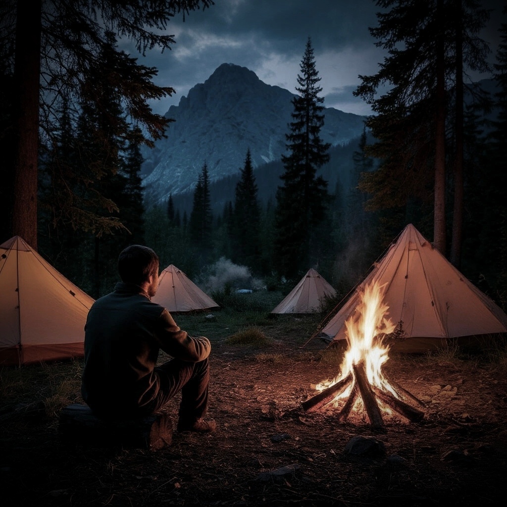 Вскоре тварь действительно вышла к небольшому лагерю из пяти палаток. Один из туристов не спит, сидит у костра. Молодой- энергии много. И душа у него молодая.