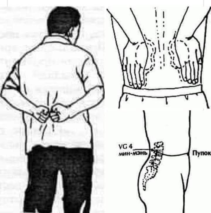 Часть 2 Одна из этих причин, наверняка, и у вас была, так что в пожилом возрасте каждый имеет диагноз «пустота почек». В Китайской традиционной медицине есть такое понятие «наука пестования жизни» — работа с «почками». Методики профилактики болезней предпожилого и пожилого возраста несложные и очень эффективные. Методика «растирания почек»: «укрепления поясницы и оздоровления почек». Чем бы человек ни занимался — трудом, спортом или повседневными делами — он всегда задействует поясницу, всегда прикладывает усилия, используя поясничные мышцы. Можно сказать, что поясница — это «командующий», руководящий всеми действиями человека. Поэтому задача её укрепления, повышения гибкости представляется чрезвычайно важной. А решить эту задачу поможет методика «укрепления поясницы и оздоровления почек». Сожмите кисти рук в кулаки, не очень крепко, но и не слишком слабо, чтобы подушечки четырех пальцев оказались в центре ладони, а большой палец — поверх них. Старайтесь придать тыльной сторон