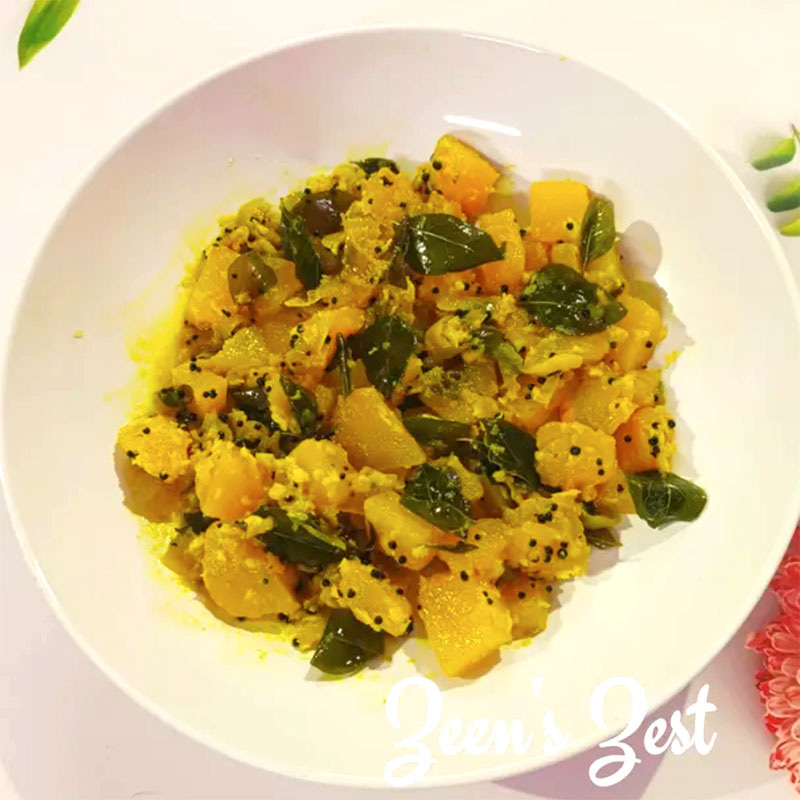 ✔️ Pumpkin Thoran Торан или Уппери в Северной Керале — это разновидность сухого блюда из овощей с кокосом, происходящая из штата Керала. Это распространенное блюдо обычно едят с рисом. Торан — это традиционное южноиндийское блюдо, приготовленное, в частности, в стиле Кералы, из мелко нарезанных или натертых овощей. Это популярный и полезный гарнир, который подают с отварным рисом и роти, и его можно приготовить с различными овощами. Отличный вариант для повседневных блюд. ⏳ Время приготовления:15-18 мин. 👪 4 порции 📜 Что понадобится: 200 г тыква (нарезанной кубиками) 3 шт. лука-шалота (нарезанного) 2-3 зелёных перца чили (нарезанных) 10-12 листьев карри 1 ч. л. семян горчицы 1/4 ч. л. куркумы 1/2 ч. л. соли 1/4 стакана свежей кокосовой стружки 2 ст. л. кокосового масла ♨️ Как приготовить: Нагрейте кокосовое масло в сковороде. Добавьте семена горчицы и дайте им потрещать. Добавьте нарезанный лук-шалот, зеленый перец чили и листья карри. Обжаривайте до появления аромата. Добавьте наре