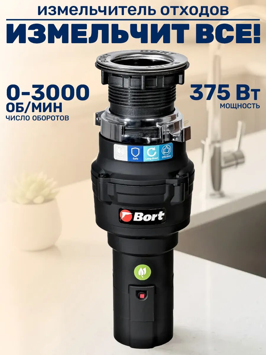 Идеален для кухни — перерабатывает овощные, фруктовые отходы прямо в раковине, сокращает объём мусора. Компактный дизайн помещается под любую мойку.