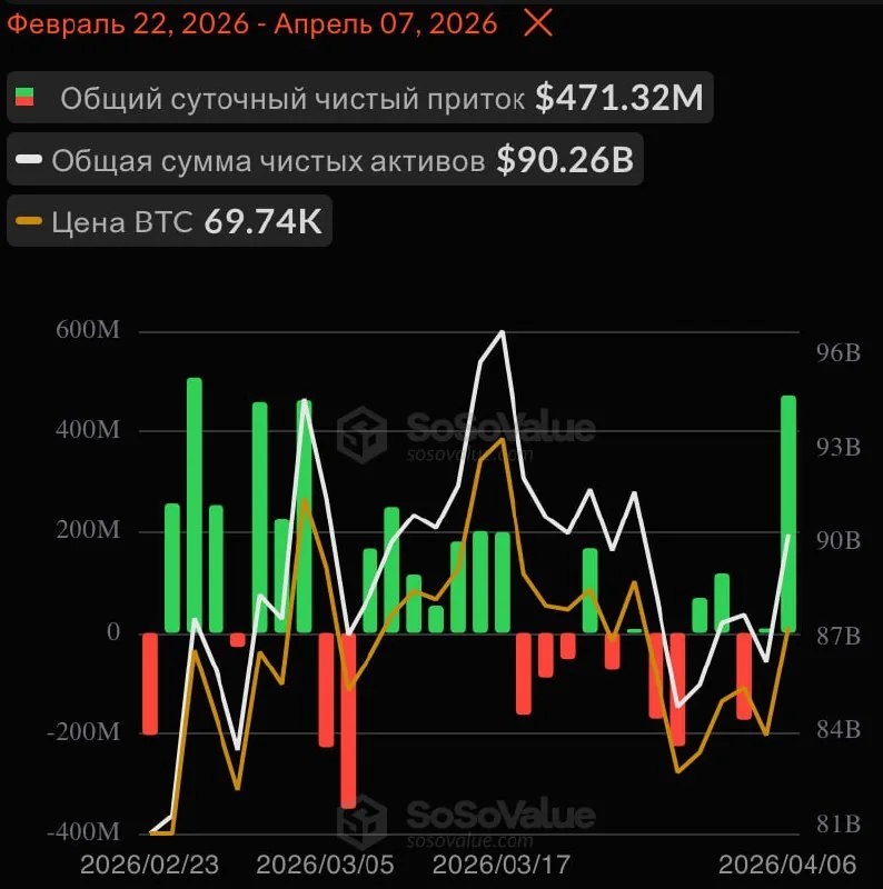 Приток капитала в биткоин-ETF превысил $471 млн за один день — самый высокий показатель с февраля
