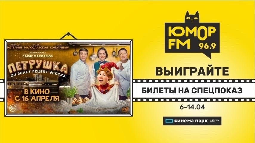 ». 15 апреля в 19:30 в кинотеатре «Формула Кино» Юмор FM приглашает слушателей увидеть фильм «Петрушка» в числе первых, за день до официального релиза. Розыгрыш билетов проходит в официальной группе радиостанций ВКонтакте до 14 апреля.