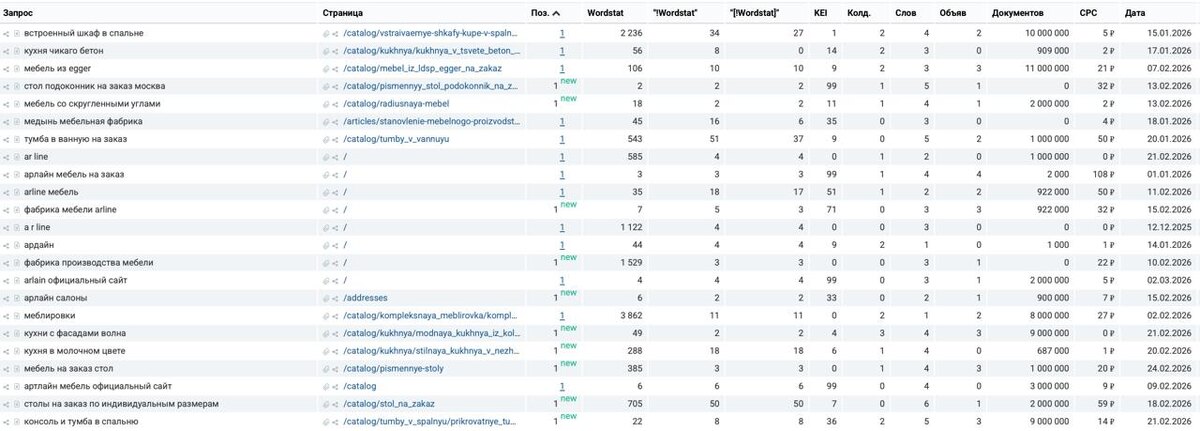 Москва. Мебель на заказ. Рынок перегрет. И вот парадокс: у клиента домен взрослый, потенциал есть, а в Google - полный 0. 👉 Зафиксируем старт - Google-трафик: 1550 пользователей/мес - Запросов в топ-10: 1133 На фоне конкурентов клиент… мягко говоря, не дотягивал: в нише есть игроки с десятками тысяч ключей в видимости и тысячами визитов в день. 👉 Что мешало расти клиенту Для Google страницы были слабые по коммерции, поэтому он их и не ранжировал. С этих деталей начинаются все проблемы: - Слабые коммерческие факторы: мало сигналов доверия (контакты/мессенджеры, график, портфолио, оплата/доставка/гарантии/FAQ/сертификаты/отзывы и т.д.). - Страницы продавали хуже рынка: в листингах и карточках не хватало характеристик, отзывов, CTA (“узнать стоимость”), логики выбора (конфигурации/похожие/избранное) и усилителей. - Ключевая посадочная была технически скрыта: canonical стоял на главную - Google мог считать её дублем и не ранжировать как самостоятельную. - Технические детали в индекса