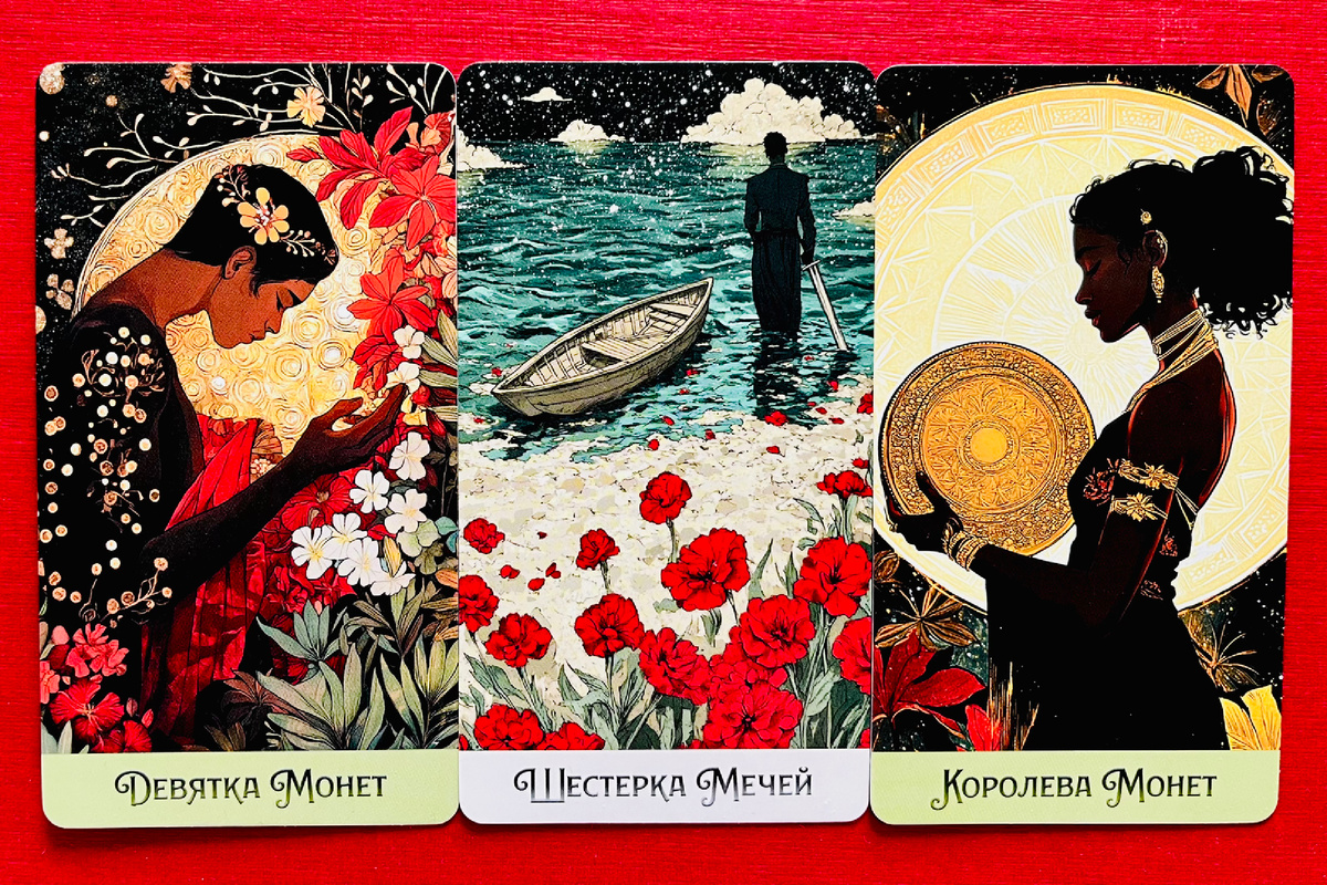 Какая ситуация волнует вас сегодня? Это тема финансового благополучия, в раскладе сегодня вышло уж очень много монет, а эта масть как раз отвечает за благосостояние, деньги, закрытие насущных потребностей, уверенность в завтрашнем дне, и вообще - за все, что связано с материальным миром. У вас есть внутренний запрос на расширение, рост доходов. Вы вдумчиво строите план на будущее. Возможно, задумались о переходе на новую работу, хотите другую должность, посолиднее и поденежнее, можете думать о развитии собственного дела. Вы находитесь в поиске чего-то нового. Есть идеи, которые кажутся интересными и перспективными. Есть задумки, которые хотелось бы реализовать и за счет этого повысить уровень дохода. 6 мечей - это работа с информационным пространством. Вы собираете сведения, анализируете, изучаете чужой опыт, просчитываете все наперед. Вы готовитесь идти в будущее, ждете прогресса, роста и новых результатов. А ведь Высшие Силы уже подали знак - через ваши желания в том числе, чере