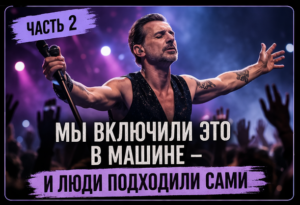 Нет, я не колесил за ними целые туры, пытаясь поймать хоть один мимолётный взгляд Дэйва. И у меня нет даже малюсенькой фотографии с автографом парня, который настраивает для Мартина гитары перед концертом. Мне достаточно музыки. Четыре раза мне посчастливилось побывать на их выступлениях — в Москве, Киеве, Цюрихе и Санкт-Петербурге. И это были эмоции, которые, если честно, до конца так и не получилось описать словами. Помню, как Дэйв выходил на сцену. Сначала он просто танцевал на балкончике над сценой — крутил бёдрами, замирал, играл с паузами. Он как будто не пел. Он собирал нас по частям. Вытягивал из зала первую энергию. И вот тут я поймал себя на странном ощущении. Будто я — та самая мартышка, на которую смотрит удав. Ты понимаешь, что сейчас всё — тебя “заберут”. И сопротивляться даже не хочется. Особенно это ощущается на Never Let Me Down Again. В какой-то момент включают свет, и Дэйв своей фирменной походкой “раз-два-три-раз-два-три” выходит на самый край дорожки, уходящей в за