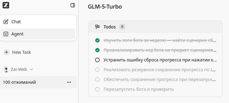 Если вы уже наигрались с DeepSeek, и начали уставать от его тупости, то ловите новый апгрейд от китайцев, и да, он снова полностью бесплатный — z.ai (GLM-5-Turbo). Китайская технологическая экспансия продолжается. Z.AI (Zhipu AI) — китайская компания, разрабатывающая open-source модели семейства GLM. Всё семейство Z.AI: chat.z.ai большая языковая модель и агент ocr.z.ai извлечение текста, распознавание документов image.z.ai генерация картинок audio.z.ai работа с аудио и генерация голоса И заявлено очень много: 1️⃣Разработка и программирование: 1. Создание веб приложений, Next.js 15, React, TypeScript 2. Написание и редактирование кода, любые языки 3. Отладка и оптимизация, поиск и исправление ошибок 4. Рефакторинг, улучшение структуры и качества кода 2️⃣Работа с документами: 1. Word .docx, создание и редактирование 2. PDF, извлечение текста, создание, объединение 3. Excel .xlsx, таблицы, формулы, анализ данных, графики 4. PowerPoint .pptx, создание презентаций 3️⃣AI возможности: 1.