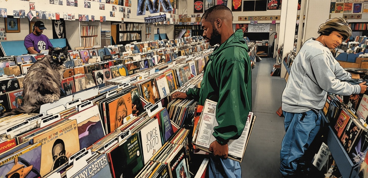 Он стал делать музыку для других исполнителей, добавляя собственные идеи. В его арсенале теперь был не только проигрыватель, но и модный тогда сэмплер модели Akai MPC60. Эта штука позволяла записывать и оцифровывать сигнал, разбивая его на фрагменты, чтобы потом по-разному варьировать различные куски.