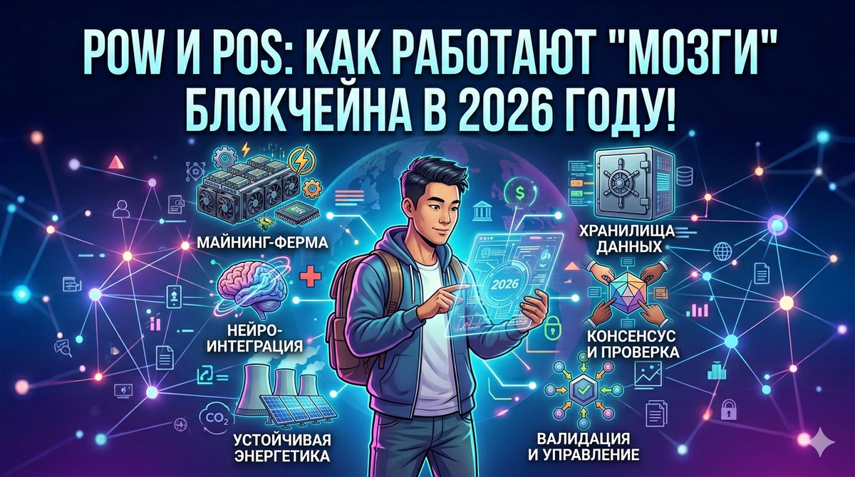 Любому блокчейну нужно подтверждать транзакции, чтобы никто не мог потратить одни и те же деньги дважды. Для этого придумали два пути: Proof-of-Work (Доказательство работы) и Proof-of-Stake (Доказательство доли). Разбираемся в разнице без воды. Кто использует: Bitcoin (BTC), Litecoin (LTC), Monero (XMR). Это старая школа. Чтобы подтвердить транзакцию, майнеры во всем мире соревнуются: чей компьютер быстрее решит сложнейшую задачу. Кто использует: Ethereum (ETH), Solana (SOL), Cardano (ADA), TON. Новая школа, на которую перешел Эфир. Здесь не нужно жечь электричество — здесь нужно иметь монеты на счету. Мир движется к PoS из-за его удобства, но PoW остается «ядерным щитом» всей крипты. В идеальном портфеле в 2026 году должны быть оба этих подхода. А вы на чьей стороне: за классический майнинг на шумном железе или за тихий стейкинг в один клик? Пишите в комментариях, обсудим, за чем будущее! Статья носит информационный характер и не является инвестиционной рекомендацией.