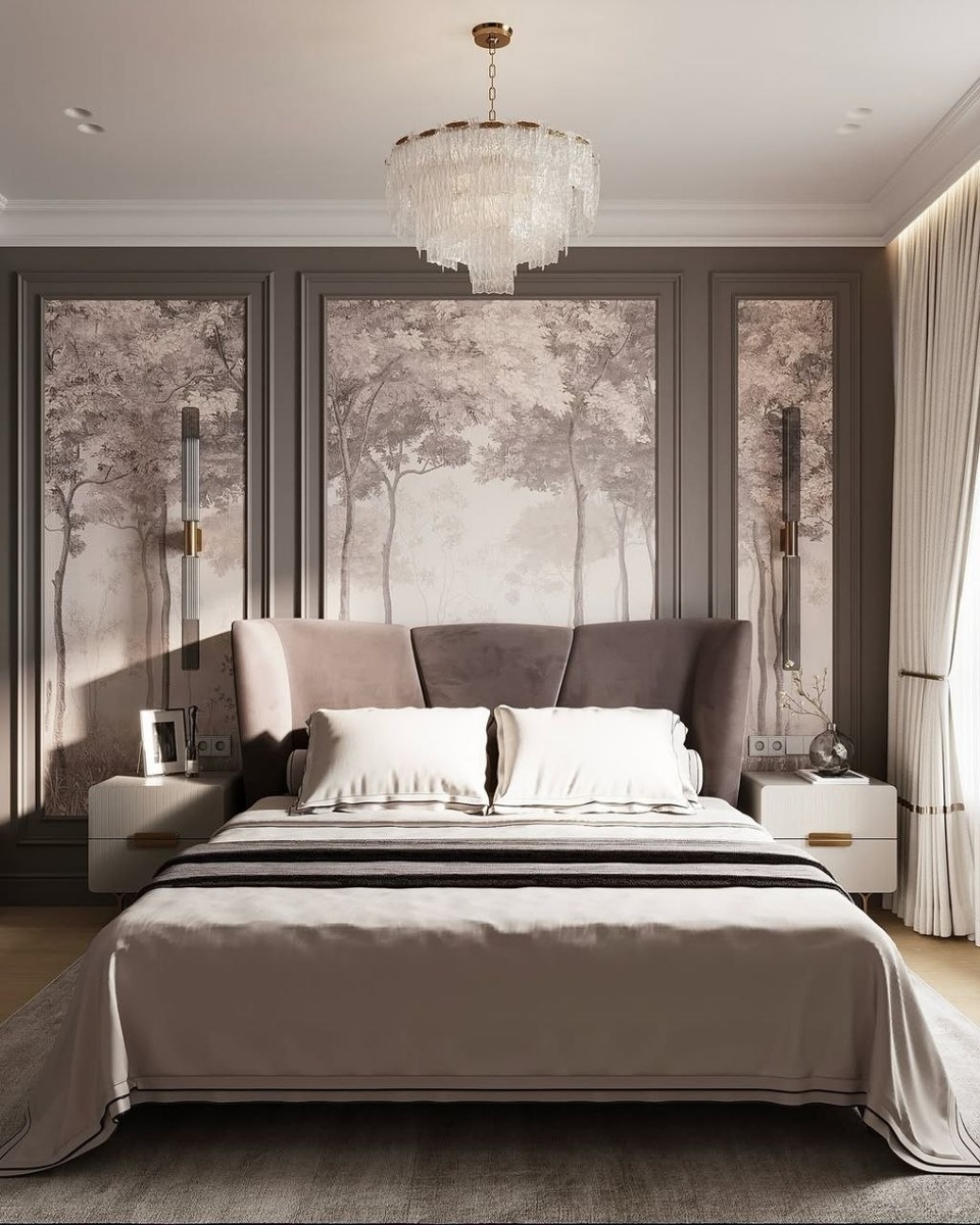 🤎 Интерьер спальни от дизайнера @yadoma_interior Яны - воплощение благородного спокойствия и современной элегантности. Композиция спальни выстроена на тонкой игре текстур и мягкой, обволакивающей палитре «пыльной розы» и жемчужно-серых оттенков. 🧡 Главным визуальным магнитом пространства выступают настенные полотна из коллекции #Wallpaperpart2@affrescoru (арт. AB55-COL4 ) виртуозно интегрированные в классические стеновые панели. Это не просто обои, а полноценная интерьерная живопись, создающая эффект «окна в туманный сад». Пространство спальни, где классическая строгость встречается с природной эстетикой, создавая идеальную атмосферу для отдыха и созерцания. - Посмотреть фрески, обои и ткани можно в нашем интернет магазине. 📞 8-800-555-31-51 📨 Salon@affresco.ru 🌏 affresco.ru ⏰ Срок изготовления от 5 раб дней ✈️ https://dzen.ru/id/5f710c51fe660a4af44007cb 🔹️ vk.com/affrescoru - #affrescoru #affresco #аффреско #фрески #обои #фотообои #обоидлястен - 💙Присоединяйся к каналу по с