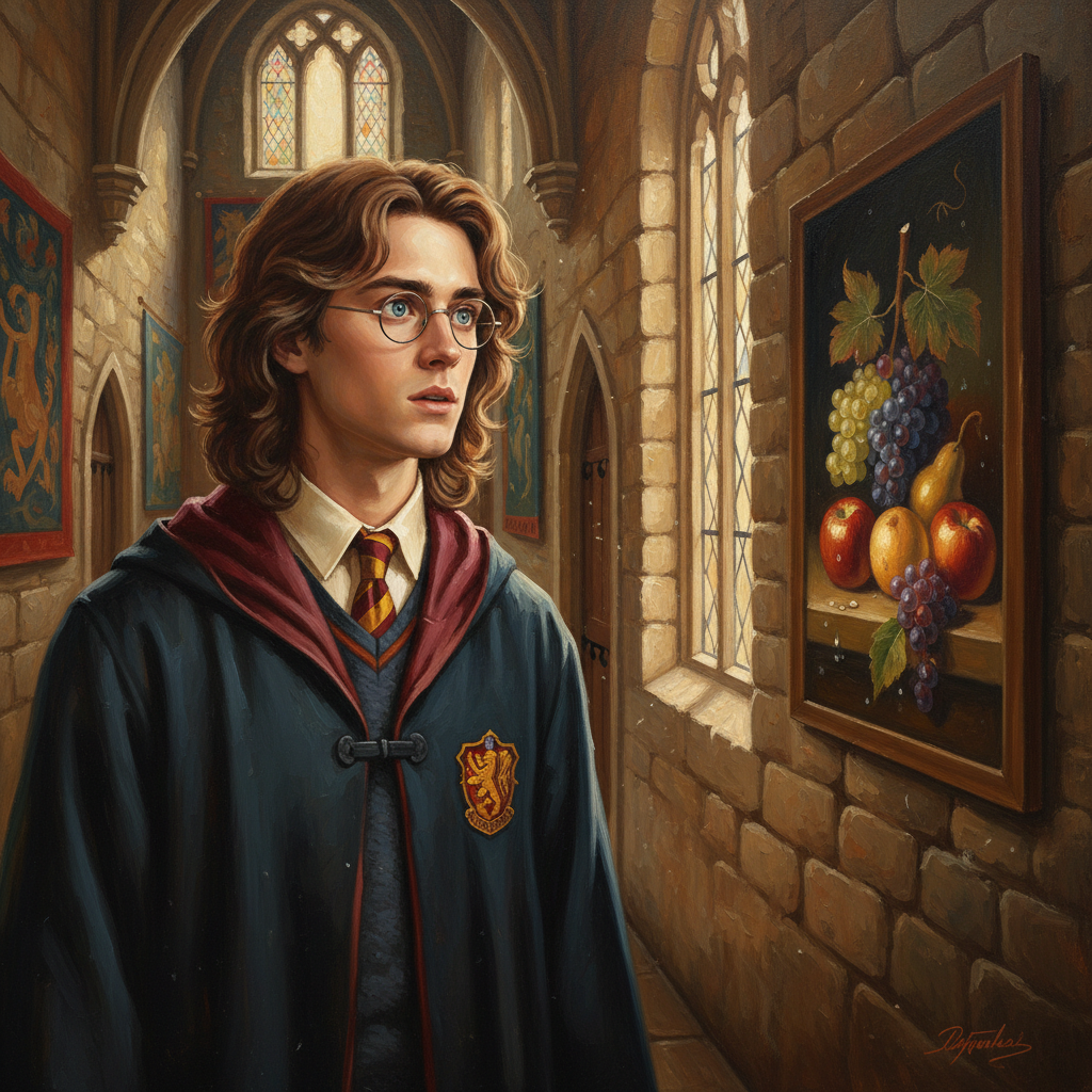Проскочив ещё пару пролётов, он оказался рядом с картиной, на которой были нарисованы фрукты. Удивлённо уставившись на неё, он ощупал её.