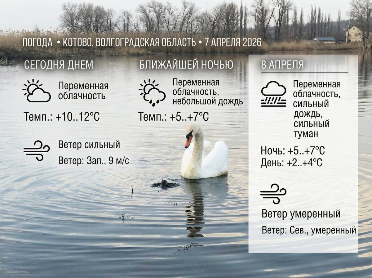 ⛅️ Сегодня днем ожидается переменная облачность, +10..12°, ветер западный, сильный, порывы до 9 м/с. Атмосферное давление в пределах нормы. Геомагнитное поле спокойное. Ближайшей ночью переменная облачность, небольшой дождь, температура +5..+7°. Атмосферное давление в пределах нормы. Возможны небольшие геомагнитные возмущения. 8 апреля, в течение суток ожидается переменная облачность, сильный дождь, сильный туман; ночью +5..+7°, днем +2..+4°, ветер северный, умеренный. Возможны небольшие геомагнитные возмущения.