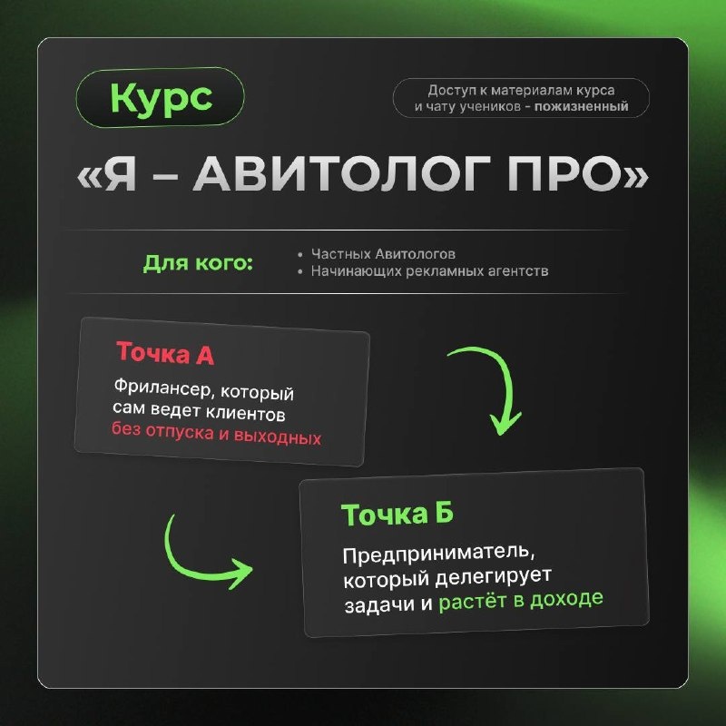 » Немного подробностей о самом лучшем оффере этой весны) Что входит в предложение: ✅ Доступ ко всей базе данных Море трафика: рабочие таблицы, регламенты, договора, вакансии, KPI сотрудников и многое другое ✅ 30+ видео-уроков с домашними заданиями на все возможные темы, необходимые для формирования эффективного рекламного агентства ✅ Онлайн-воркшопыразборы от авторов школы «Я - Авитолог» ✅ Общий чат всех учеников (будущих и действующих собственников рекламных агентств) ✅ Индивидуальная обратная связь от кураторов ✅ Индивидуальная сессия-разбор со мной, чтобы быстро и гладко внедрить всё в работу. Подробная программа на фото. Стандартная стоимость курса - 150 000р. Но до конца недели действует уникальное предложение. Курс по построению собственного агентства всего за 100 000р🔥 Старт потока - 15 апреля. Осталось 4 места❗️ Если у вас есть вопросы - пишите мне в ЛС @amgtrafficmore Отзывы от учеников 1 потока в следующем посте👇