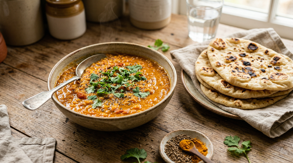 Сейчас расскажу, как за сто пятьдесят рублей я делаю полноценный обед на двоих — густое ароматное карри из чечевицы и мягкие лепёшки, которые заменяют любой хлеб. Рецепт проверен десятки раз, он прижился в нашей семье и стал чем-то вроде домашней классики.