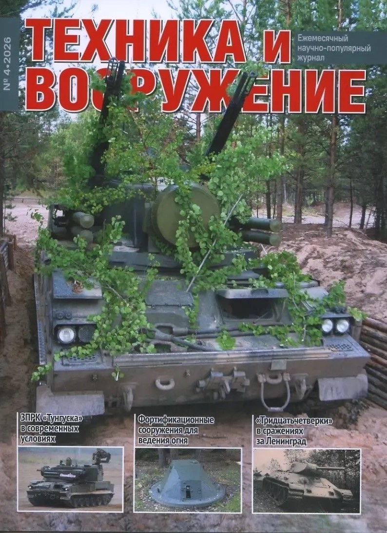 «Техника и Вооружение» 2026 №4 Одновременно с «Авиацией и Космонавтикой» вышел апрельский номер и другого не менее популярного журнала — «Техника и Вооружение». Полный перечень его статей смотрите ниже. Там, как всегда, есть что почитать и на что посмотреть. Отметим пару публикаций выпуска. Журнал открывает статья о знаменитом самоходном зенитном комплексе «Тунгуска». Акцент сделан на его применении в современных условиях (жив, курилка!). В прошлых выпусках речь шла о «Шилке»; судя по названию этой статьи, следующая, наверное, будет публикация о «Панцире» (полное название статьи — «Между „Шилкой“ и „Панцирем“: ЗПРК „Тунгуска“ в современных условиях»). Напомним, что «Тунгуска» — это первый в мире зенитный пушечно‑ракетный комплекс, принятый на вооружение в 1982 году. И главным отличием от «Шилки» (правильнее — ЗСУ‑23‑4) было наличие у комплекса маловысотных зенитных ракет. Применять ведь «Тунгуску» тогда планировалось прежде всего против вертолётов: о роях беспилотников и ударных дронах