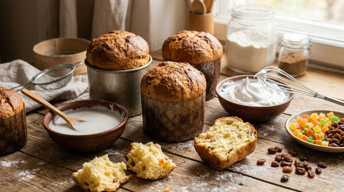 Когда тесто получается слишком жидким, оно поднимается в духовке за счёт пара и активности дрожжей, но у него не хватает внутренней структуры, чтобы удержать эту форму. Клейковина, которая должна работать как каркас, просто не справляется. Представьте воздушный шарик, стенки которого слишком тонкие — он надувается быстро, но лопается от малейшего прикосновения. Примерно то же самое происходит с куличом из жидковатого теста: он вздувается, а потом оседает, потому что стенки воздушных пузырьков внутри не выдерживают собственного веса.