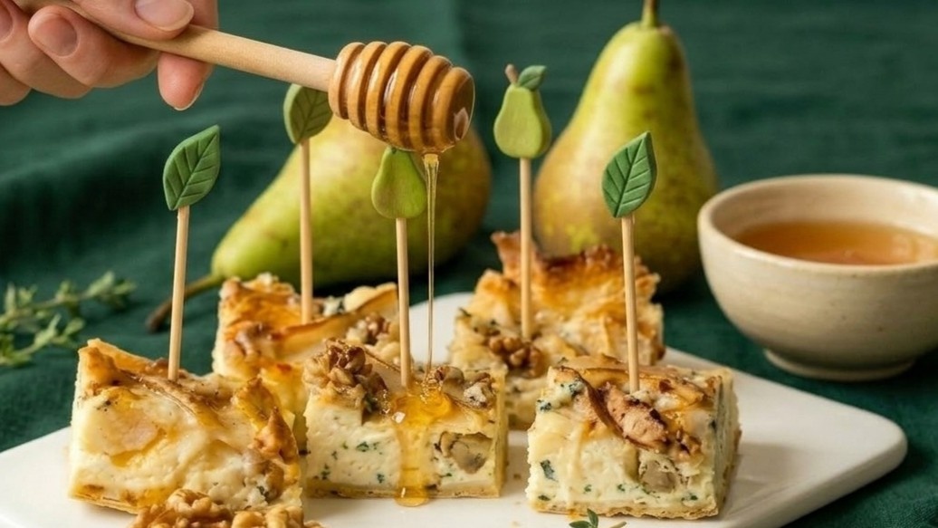 Здесь нет сахара вообще. Сладость только от груши, поэтому выбирайте спелую, но плотную, чтобы не развалилась при запекании. Творог в сливках убирает кислинку. Соль и сыр добавляют пикантность. А мёд в самом конце, уже после духовки, завершает вкус: чуть сладости, чуть аромата.