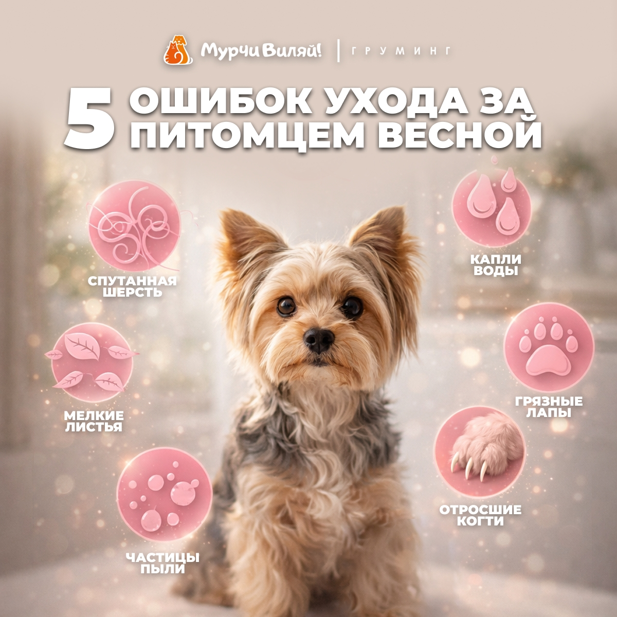 Весна — время обновления. Но для хозяев питомцев это ещё и период, когда легко допустить ошибки в уходе за пушистиками🐾 Собрали 5 самых частых — проверьте себя 👇 1. Редко вычёсывать шерсть Кажется, что линька — это «само пройдёт»