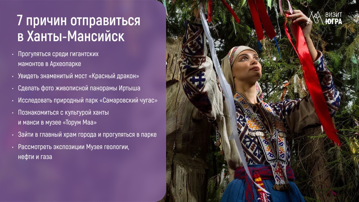 Забудьте привычные представления о Югре! В Ханты-Мансийске можно увидеть мамонтов, проехать по мосту, напоминающему алого дракона, и оказаться в настоящей тайге всего в нескольких шагах от города. Эти 7 мест покажут вам Ханты-Мансийск с неожиданной стороны. Готовьтесь удивляться! Археопарк – реконструкция доисторического мира под открытым небом. У подножия Самаровского останца стоят 11 бронзовых мамонтов и мамонтят, самый крупный из них достигает 8 метров. Здесь можно встретить и других обитателей плейстоцена: бизонов, волков, пещерных медведей. Можно увидеть, как менялась жизнь на этой территории со времен каменного века. Когда наступает вечер, включается подсветка, и парк превращается в одно из самых эффектных мест города. К мамонтам удобно добираться по мосту, который местные прозвали «Красным драконом». Его пролеты изогнуты так, что действительно напоминают спину сказочного существа. Особенно эффектно мост выглядит вечером благодаря подсветке. С моста открываются панорамные виды на