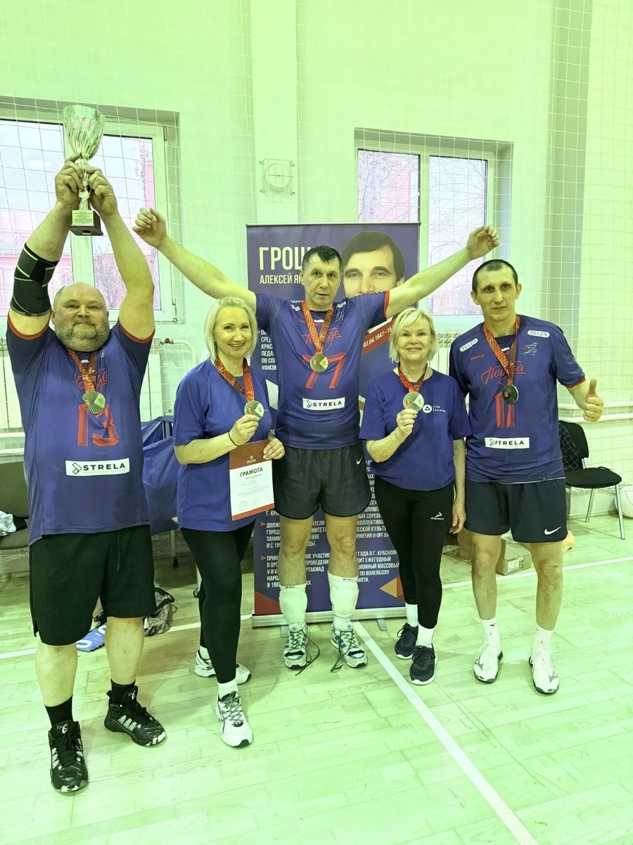 В Красноярске прошел 26-й региональный Кубок города по волейболу, посвященный памяти Алексея Грошева. В этом году в нём приняли участие более 4000 спортсменов. Они приехали из двадцати четырех городов и сёл Красноярского края, а также из Хакасии и Иркутской области. 💬 Алексей Грошев легендарная личность в красноярском спорте. Он прошел путь от учителя физкультуры до председателя спорткомитета Красноярска. Развивал городские спартакиады между районами города, проект «Стартуют все». Память о нём спортсмены бережно хранят, турнир его имени – лучшее тому подтверждение, – отметил руководитель главного управления по физической культуре, спорту и туризму Красноярска Александр Каминский. 🥇В группах по миниволей в категории "Микс 200+лет" команда «Победа» (Мисевро С.В., Куц А.В., Сенников О.В., Симкачева И.Б., Усачева Е.М.) заняла первое место. 🥉В категории "Микс до 200 лет" команда «Молния-М» Р ( Орешников Е.В., Гучигов З.С., Саломатникова Е.В., Краус Н.Н.) заняла третье место. 💬