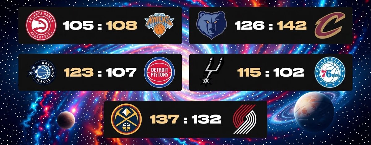 7 апреля в рамках регулярного чемпионата НБА состоялось несколько захватывающих матчей. Давайте разберём ключевые результаты и моменты игр. В напряжённой борьбе «Нью-Йорк Никс» вырвали победу у «Атланты Хоукс» с минимальным перевесом — 108:105. Ключевым стал финальный отрезок матча, где разыгрывающий защитник «Никс» Джейлен Брансон проявил себя максимально эффективно: он набрал 30 очков (17 из них — в последней четверти) и отдал 13 передач, оформив дабл-дабл. У «Атланты» блистал Никил Александер-Уокер, набравший 36 очков. Также стоит отметить Джейлена Джонсона (21 очко + 11 подборов) и Си Джея Макколлума (17 очков). Однако команда допустила слишком много потерь (12 раз за первую половину) и реализовала лишь 40% бросков за матч. Итог: «Нью-Йорк» укрепил позиции в зоне плей-офф (51 победа, 28 поражений), а «Атланта» остаётся в борьбе за место в плей-ин (45 побед, 34 поражения). «Кливленд Кавальерс» продемонстрировали мощную игру в гостях, разгромив «Мемфис» со счётом 142:126. Ключевые и