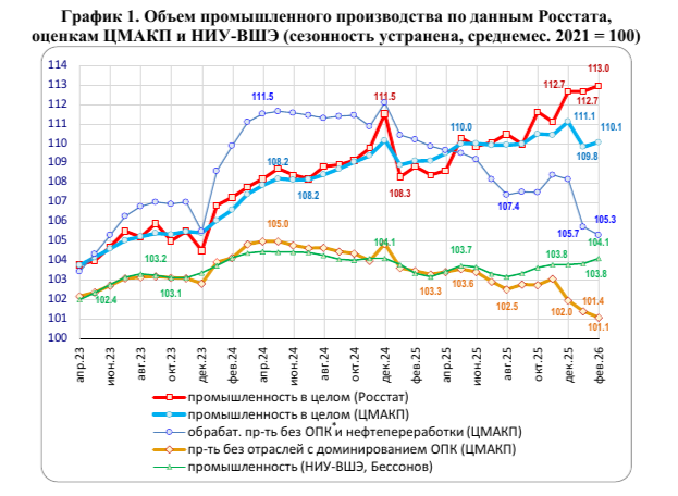 В заключение можно лишь добавить, что по итогам февраля 2026 года гражданская промышленность выросла на 1% к среднему значению 2021 года. Вот такая динамика за 5 лет! Но это еще не предел: судя по тенденциям, там скоро будет ноль, а затем и отрицательный рост.