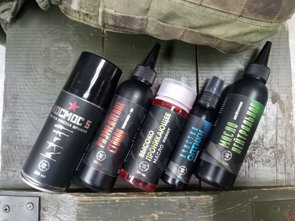 несколько. В первую очередь это то, что на нарезах образуется накат меди или томпака от оболочки пули, проходящей через канал ствола. С каждым выстрелом "слоёный пирог" из наката и продуктов сгорания пороха растёт и уплотняется под давлением. Отложения в "нарези" всегда плотнее, чем в гладкоствольном оружии и это нужно учитывать при выборе химии и самом обслуживании. Исходя из минимальных потребностей обслуживания нарезного оружия, набор химии должен содержать средства для удаления нагара, омеднения и проведения смазки. Но не всё так однозначно. Формирование такого набора безусловно должно производиться исходя из нескольких факторов. Предпочтения стрелка по способу обслуживания, особенности оружия, требующие применения определённых средств и так далее. Поэтому к базовому набору, который полностью закрывает потребности по обслуживанию гладкоствольного и травматического оружия, уже добавляются сольвенты для удаления омеднения и проникающие масла. К тому же в большинстве случаев, на сей д