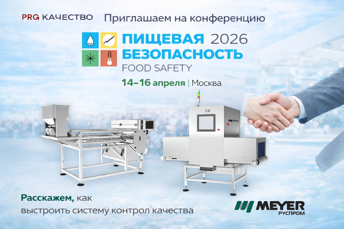 14–16 апреля наша команда принимает участие в конференции "Пищевая безопасность 2026", организованной Роскачеством. Ключевая тема нашего выступления: «Невидимые дефекты – видимые потери. Технологии инспекции против инородных включений». Сегодня контроль качества – это система управления рисками. Даже единичное инородное включение может привести к рекламациям, штрафам со стороны ритейла и потере контрактов. На конференции мы покажем, как этого избежать с помощью технологий инспекций. 14 апреля – онлайн-выступление В рамках деловой программы Ирина Кузнецова, ведущий менеджер «Руспром Meyer» разберет практические аспекты контроля качества на производстве: · входящий контроль сырья · контроль в процессе переработки · финальная инспекция готовой продукции Покажем, как комбинируются технологии фотосепарации, рентген-инспекции. И главное – как выстроить систему, которая: · снижает риск рекламаций до минимума · соответствует требованиям ритейла и пищевых стандартов · дает подтверждение качеств