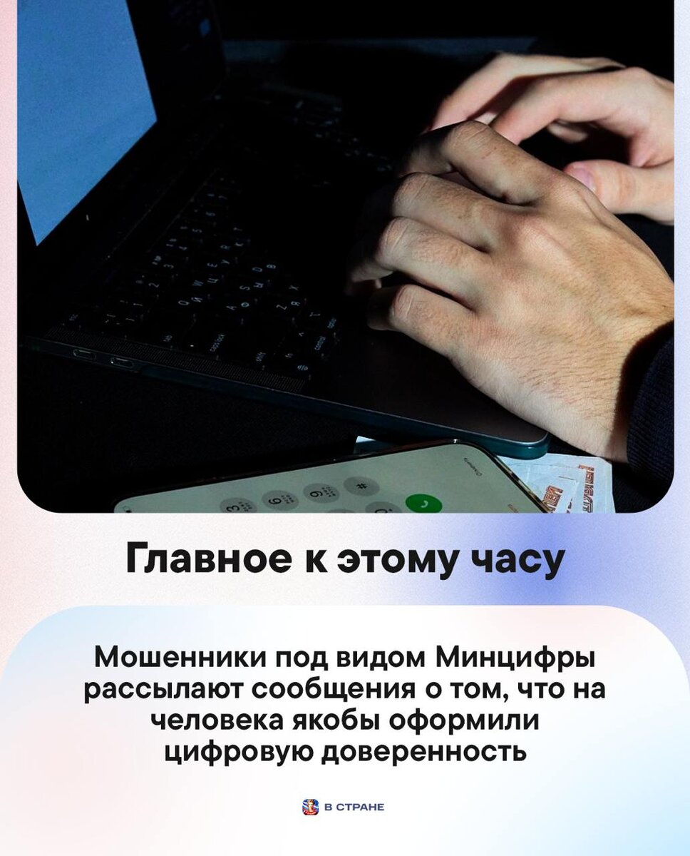 : 🔹 Мошенники под видом Минцифры рассылают сообщения о том, что на человека якобы оформили цифровую доверенность. 🔹В Пермском крае 17-летний подросток ударил ножом преподавательницу, вследствие чего женщина скончалась. 🔹 Двое взрослых и 7-летний ребенок погибли в результате попадания украинского БПЛА в жилой дом во Владимирской области. 🔹 В России организацию «Чеченская Республика Ичкерия» признали террористической и запретили ее деятельность. 🔹 Количество жертв пожара в «Нижнекамскнефтехиме» увеличилось до 12 человек. 🔹 Ночью сеть «Ростелекома» столкнулась с мощной DDoS-атакой. ✅ «В Стране» в MAX