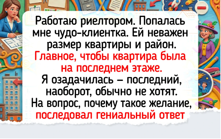 Работа риелтора — это далеко не только строгие договоры и подсчет квадратных метров. Порой это настоящий сериал, где каждый показ квартиры может обернуться совершенно неожиданным финалом. Как вам, например, идея прорубить секретный портал к соседке прямо за настенным ковром? Или обнаружить в чужом шкафу говорящего попугая, истошно зовущего на помощь, а в ванной — притаившийся манекен? Рекомендуем также заглянуть сюда 👇👇👇 А вам когда-нибудь доводилось попадать в курьезные ситуации при аренде, покупке или продаже жилья? Превью статьи: