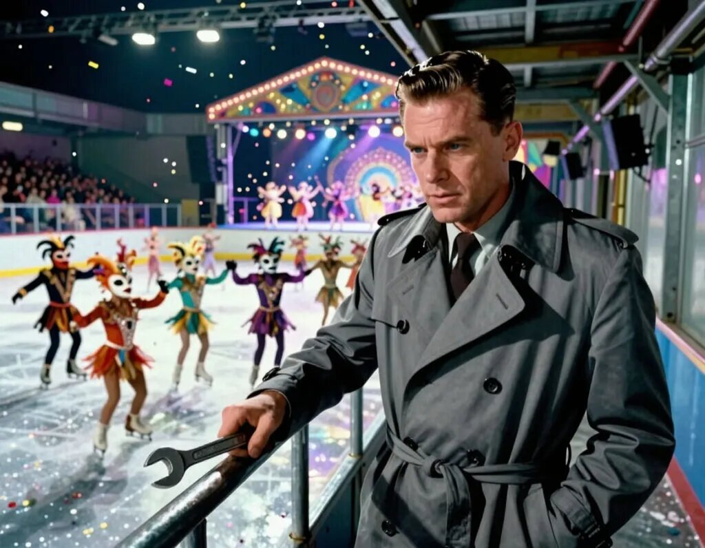 Оркестр грянул финальный аккорд вальса. Зал взорвался аплодисментами. В этот самый момент Билл заметил его — человека в сером плаще, который слишком быстро двигался вдоль технической галереи под потолком. В руке у незнакомца был тяжёлый разводной ключ. Он исчез в тени так же внезапно, как и появился.