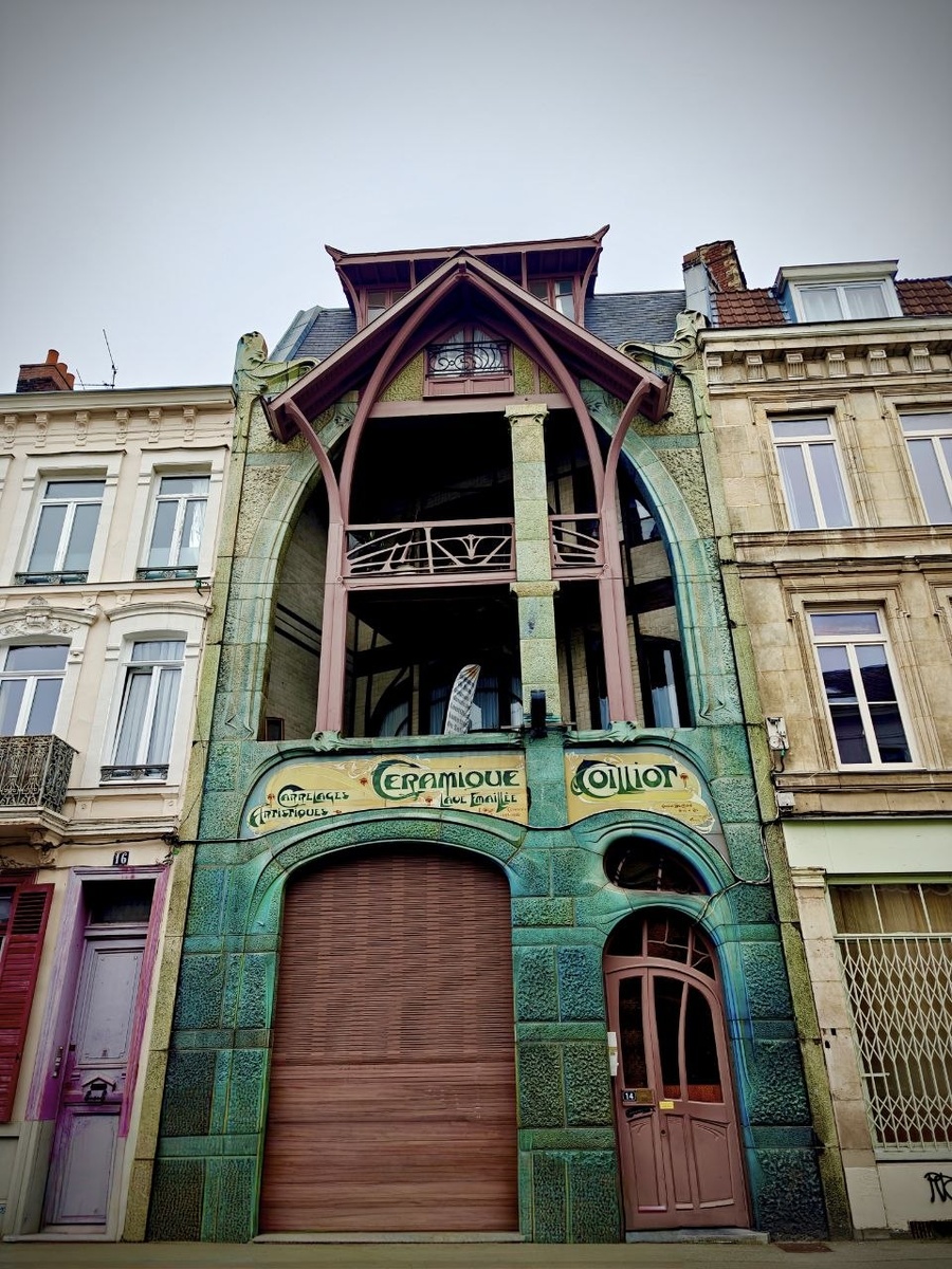 Дом Кайо, на мой взгляд, один из самых смелых архитектурных проектов в стиле ар нуво во Франции. Построил его архитектор Виктор Гимар, автор знаменитых входов в парижское метро. Я вам уже показывала его виллу в Везине, рядом с Парижем. Сейчас в доме работает оптика (я была в выходной, и она тут на фото закрыта). А на втором и третьем этаже - чья-то квартира. Говорят, что внутри там тоже всё цветочное: камин, мебель, окна. 📍14 rue de Fleurus, Lille
