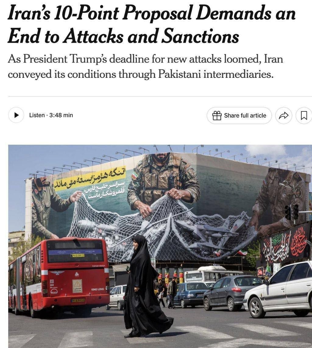 Детали десятипунктного предложения Ирана по прекращению военных действий, — NYT