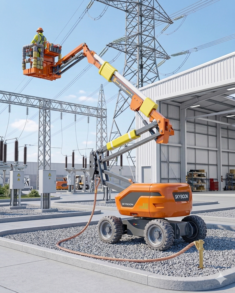 Обслуживание ЛЭП и подстанций: использование подъемников Skyboom с изоляцией корзины