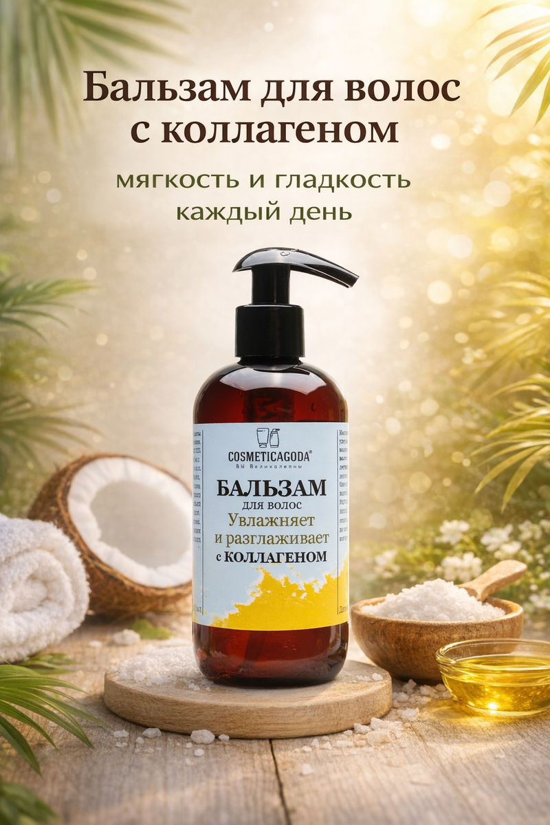 Бальзам для волос с коллагеном COSMETICAGODA — это вариант для тех, кто хочет сделать длину мягче, уменьшить сухость, облегчить расчесывание и получить более ухоженный вид волос без лишней тяжести. Не чудо, а просто нормальный рабочий уход, который действительно нужен многим волосам.