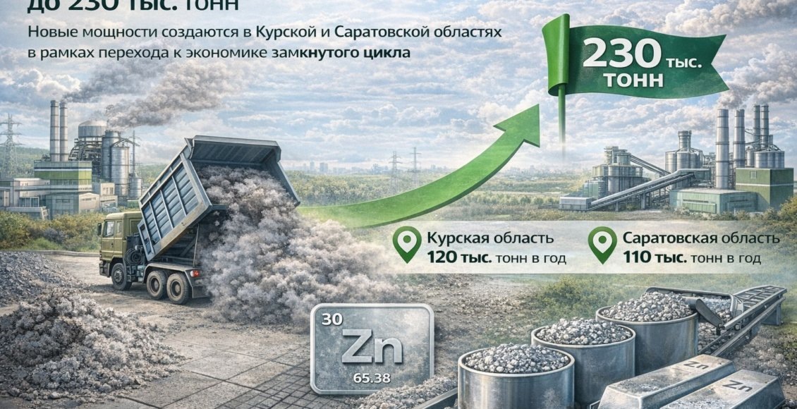 Совокупные мощности по переработке цинксодержащей пыли в России к концу 2026 года достигнут 230 тыс. тонн в год. Об этом сообщили в Российском экологическом операторе. Речь идет о переработке отходов, образующихся в газоочистных установках электросталеплавильных печей. Ранее такие отходы в стране практически не вовлекались в повторное использование. Развитие соответствующих производств ведется в рамках региональных программ перехода к экономике замкнутого цикла. Ключевые проекты реализуются в Курской и Саратовской областях, часть мощностей уже введена в эксплуатацию. В Железногорском районе Курской области реализуется проект по производству вельц-оксида цинка — сырья для получения металлического цинка. Проект размещен в особой экономической зоне «Третий Полюс», инвестором выступает компания «Цинкум». Мощность предприятия составит до 120 тыс. тонн переработки в год. Как отмечается, сырье поступает не только из российских регионов, но и из Республики Беларусь. Производственный цикл орган