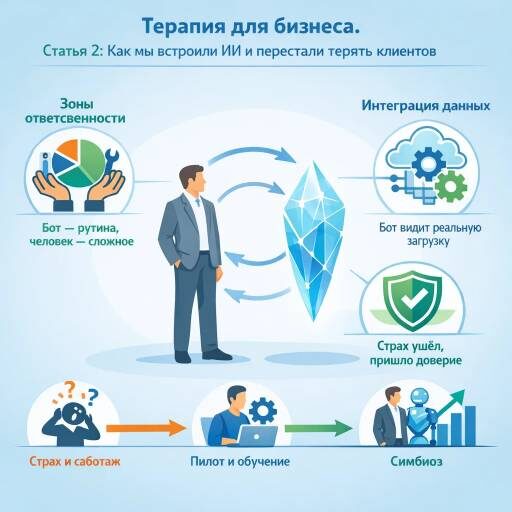 Это классический симптом технологической аллергии: организм компании отторгает новые инструменты, потому что они встроены неправильно. Как у человека, которому пересадили чужой орган, организм сопротивляется, иммунитет атакует, а пациент страдает. Моя задача как терапевта была не в том, чтобы прописать ещё одну «таблетку» (новый софт), а в том, чтобы провести сложную операцию по вживлению цифровых сотрудников в живую ткань компании.