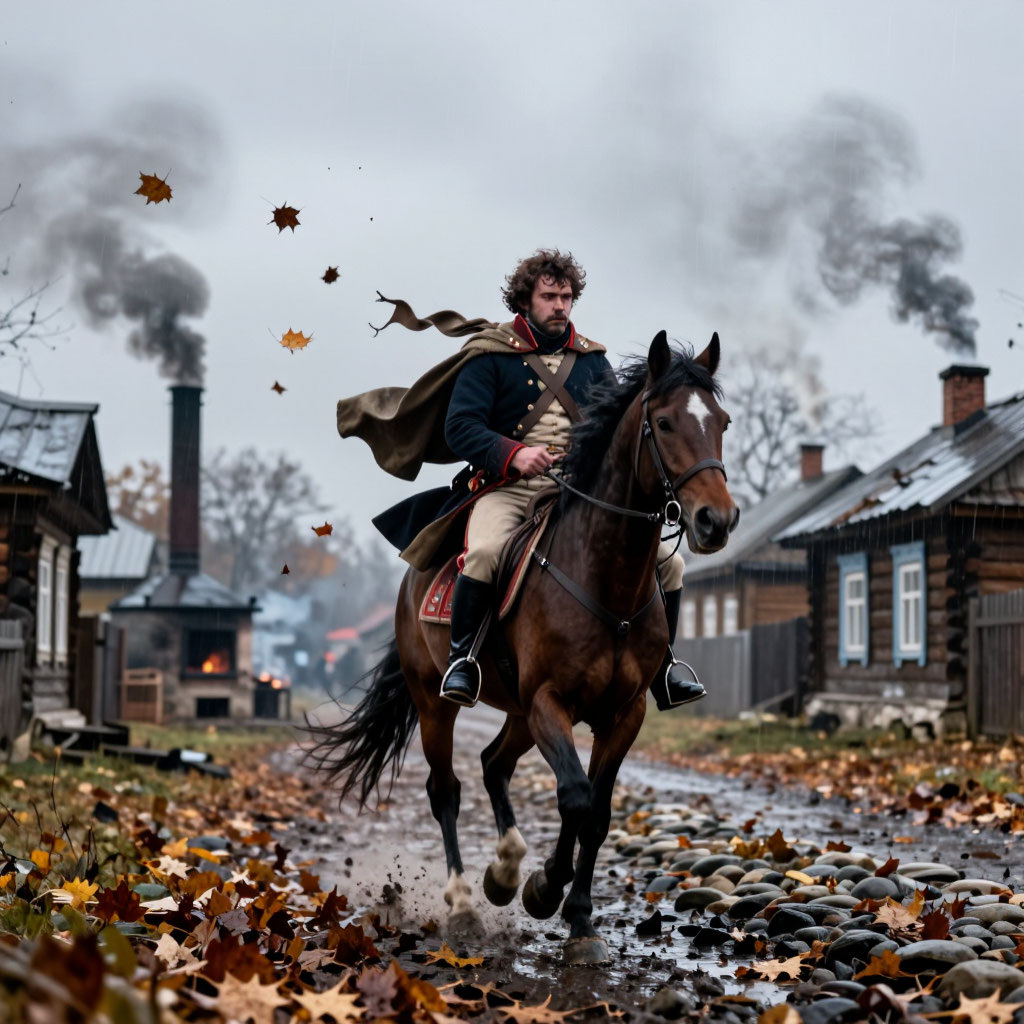 Денис Давыдов въехал в село Мокровичи под хмурым ноябрьским небом. Ветер гонял по улицам сухие листья, а в воздухе витал запах дыма — то ли от крестьянских печей, то ли от далёких пожарищ, что сопровождали отступление французов. Сердце его сжималось: предстояло принять непростое решение.