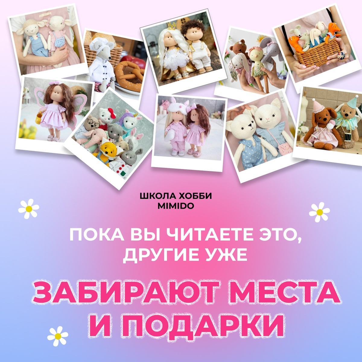 ? Для всех, кому одобрят стипендию, я хочу добавить ещё один бонус — дополнительный мастер-класс в подарок. Это мои любимые мастер-классы, и любой из них вы сможете выбрать для себя сами ⤵️ ⭐️ Незнайка — один из самых любимых персонажей нашего советского детства. ⭐️ Милая девочка-рыбачка — Очень уютный, трогательный и по-настоящему душевный образ. ⭐️ Малышка-эльф — сказочная, нежная, с цветочком. ⭐️ Гномик-рыбак — харизматичный герой, которого очень любят за необычный образ и настроение. ⭐️ Милые мартовские котята — один из самых любимых проектов в формате персонажей-парочки. Очень нежная и атмосферная работа. ⭐️ Куклы-ангелы — замечательный подарок на именины, день рождения, годовщину, крестины и другие особенные даты. Чтобы получить основной курс и ещё один мастер-класс бонусом, успевайте подать заявку на стипендию. 👉 https://mimido.ru/studentship_reg?utm_source=tgkanal