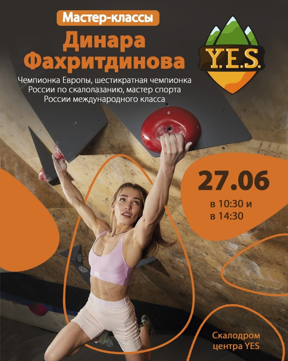 ! К нам с мастер-классами едет….Динара Фахритдинова! 😃 👉🏻27 июня в Центре YES🔥 Чемпионка Европы и шестикратная чемпионка России по скалолазанию, мастер спорта России международного класса проведет 2 мастер-класса на нашем скалодроме под отрытым небом! Количество мест ограничено! Покупка билетов на сайте : https://yes35.ru/sobitiya/index.html Мы знаем, как вы ждали Динару❤️
