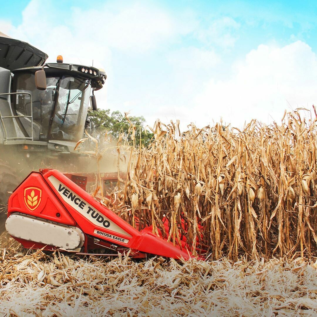 Сегодня разберем решение от бразильского завода Vence Tudo - жатку Bocuda Eagle. Эта технология только начинает массово заходить на российский рынок, но те хозяйства, которые уже её протестировали, отмечают чистоту уборки, нетипичную для привычных агрегатов. Большинство кукурузных жаток - это тяжелые стальные конструкции. Bocuda Eagle весит всего 2,2 тонны. Почему это важно? Идеальных полей не бывает. Полегание кукурузы - обычное дело. Большинство жаток имеют большой угол атаки (наклона). Из-за этого они часто «пролетают» над полеглыми стеблями или, наоборот, начинают «грести» землю. У Bocuda Eagle самый низкий угол атаки в классе - всего 14°. Жатка идет максимально низко к зем