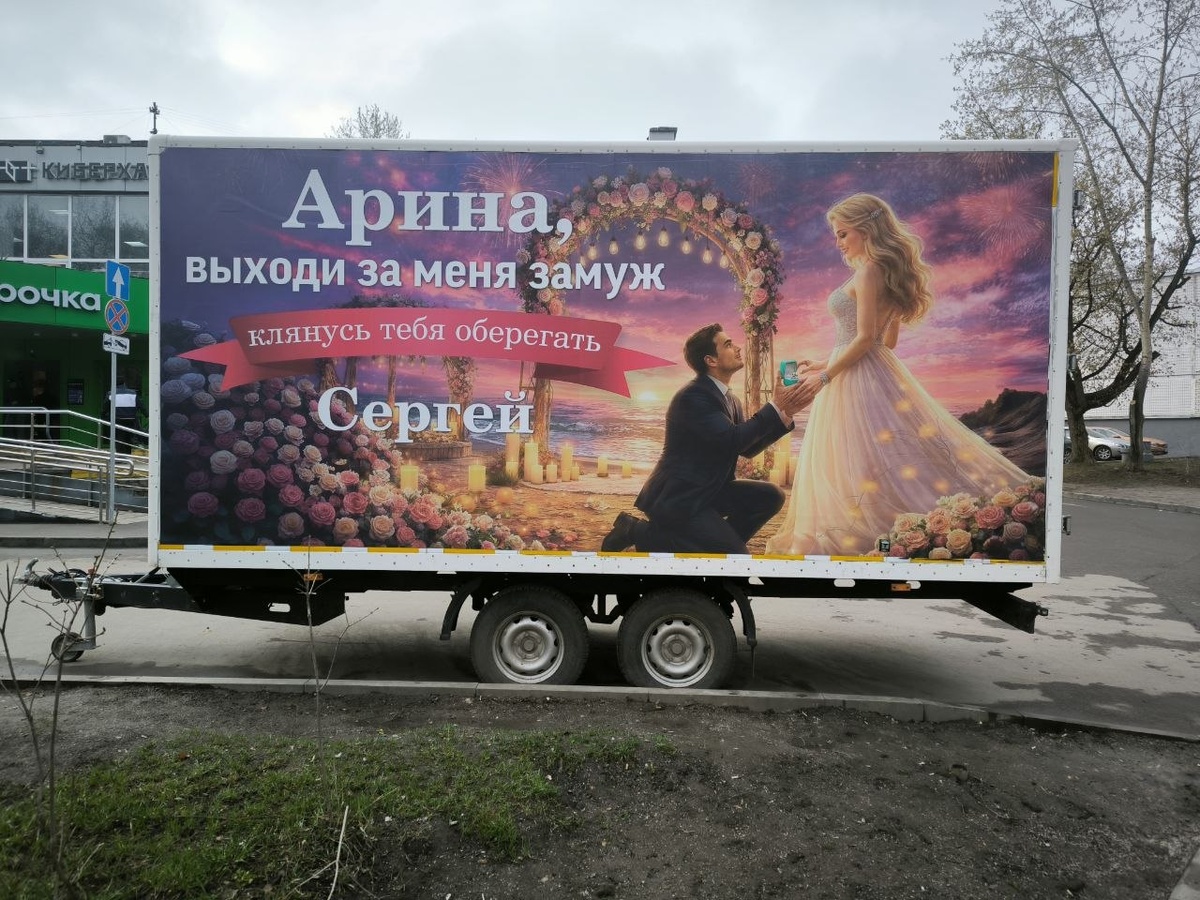🔥Сергей решил сделать по‑настоящему необычное предложение Арине, разместив его на билборде. 🙏Искренне надеюсь, что Арина согласится — и эта пара будет по‑настоящему счастлива! ‼️Пожелаем им любви и благополучия.