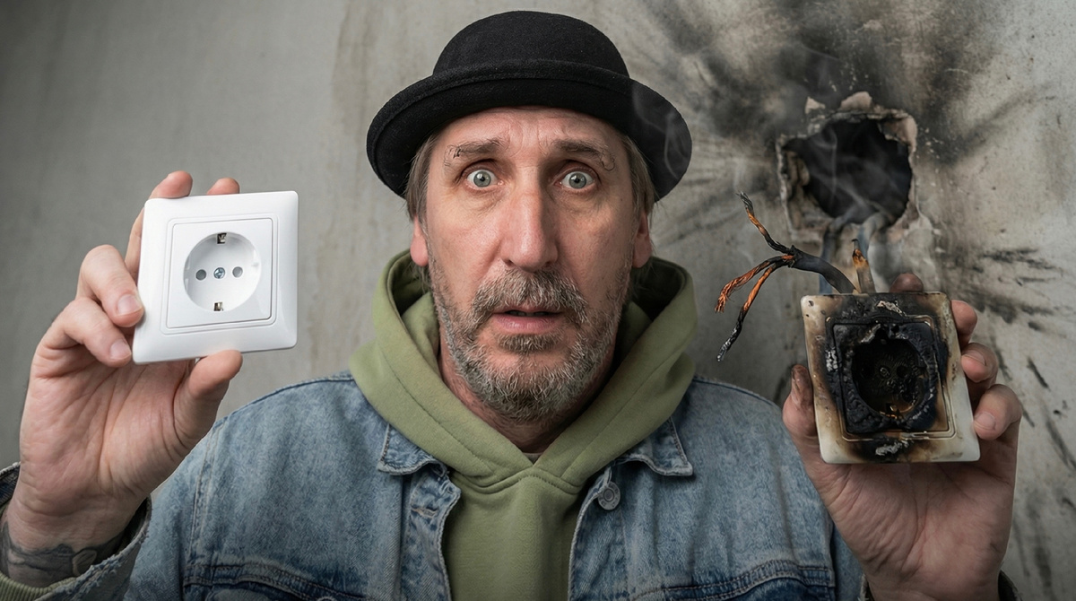 Через полгода заказчик прислал фото. Розетка оплавилась. Контакт потемнел, пластик потёк. Автомат стоял в рабочем положении и не думал отключаться. Для него всё было штатно.