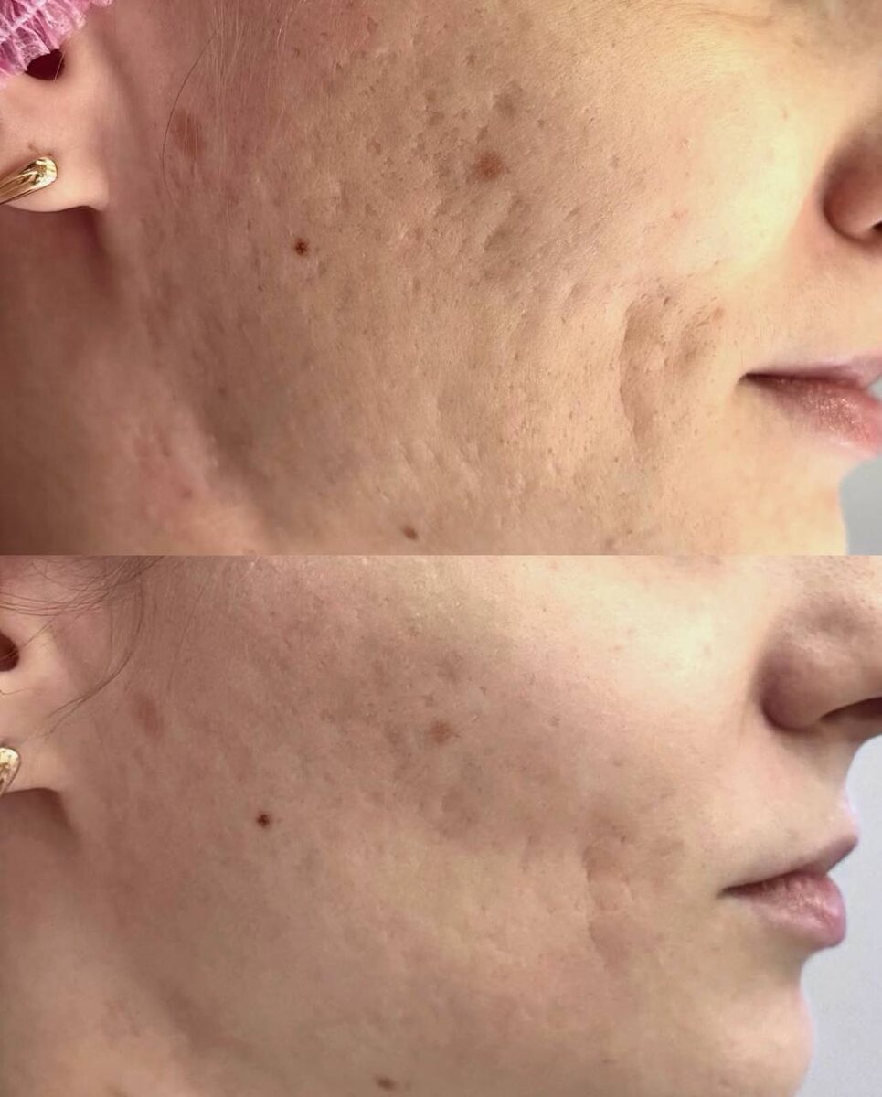 ) 1. Используем только работающие и научные методы - в данном случае было проведено две процедуры биоревитализации с субцизией и два игольчатых РФ лифтинга 2. Не тратим время и деньги пациента на бесполезные рекомендации из серии «попробуйте скраб, крем от рубцов, рф без игл, массажики поделаем» 3. Остаемся с пациентами на связи на весь период лечения - вы всегда можете написать нам по поводу интересующих вас вопросов (связь касаемо лечения только через администратора) #допосле_пантеон Кейс коррекции рубцов от Асии Конаревой, врача-дерматолога, косметолога ____ Запись к нам на очный и онлайн прием на безопасную косметологию Телефон: +7(495)208-01-47 Telegram запись: @clinicpantheon Сайт