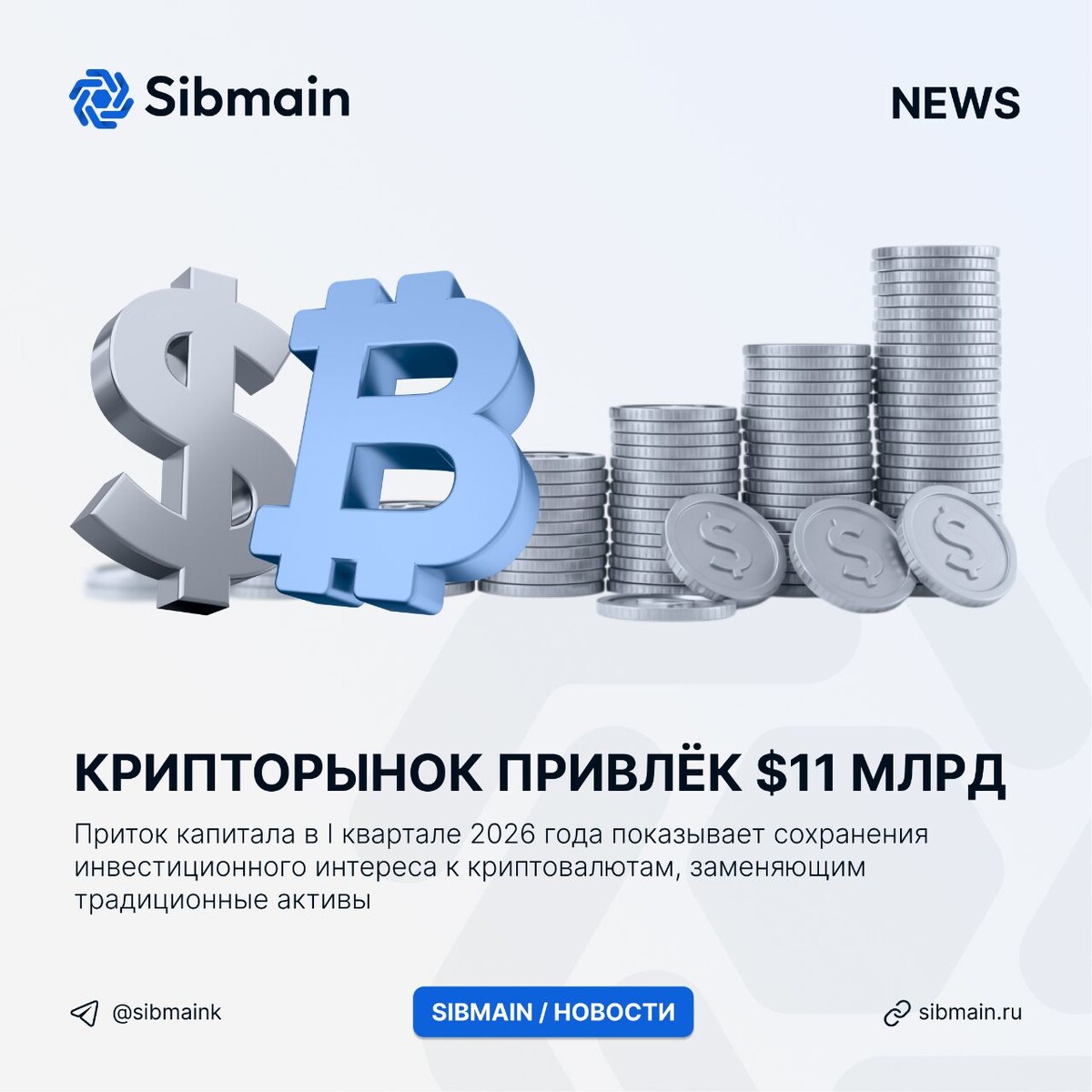 📰📰📰📰 ➡️Крипторынок привлёк $11 млрд Общий объем притока капитала на крипторынок в I квартале 2026 года достиг $11 млрд по данным аналитиков JPMorgan. Структура притока капитала: ⏺Крипто-венчурные фонды; ⏺Фьючерсная активность; ⏺Корпоративные казначейские облигации 📍Приток капитала в I квартале 2026 года показывает сохранения инвестиционного интереса к криптовалютам, заменяющим традиционные активы
